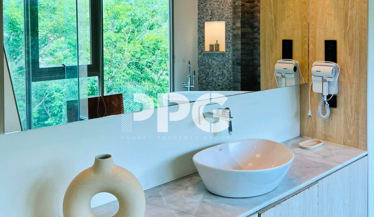 Обе спальни спроектированы с учетом комфорта и элегантности: большие окна, современный декор и прямой выход на частный балкон. Главная спальня — это настоящее уединение: роскошная кровать королевского размера, стильное деревянное изголовье, шикарная мебель — и все это на фоне безмятежного вида на лес, который создает успокаивающую атмосферу.